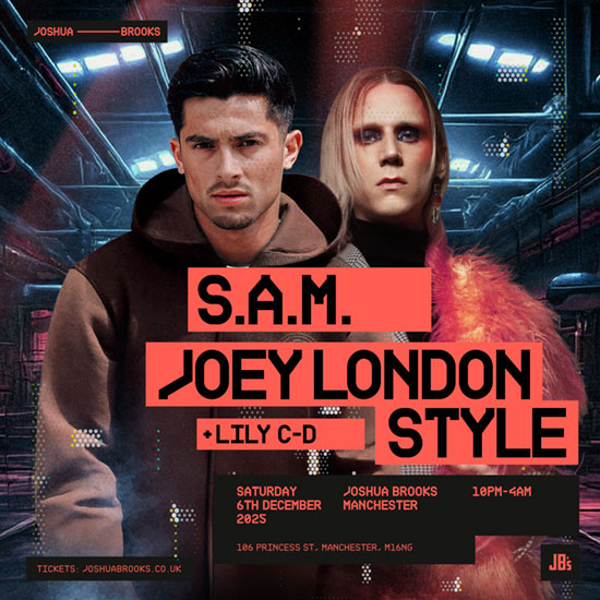 Copenhagen meets Manchester as S.A.M. brings his trippy minimal grooves to Joshua Brooks alongside Joey London Style.