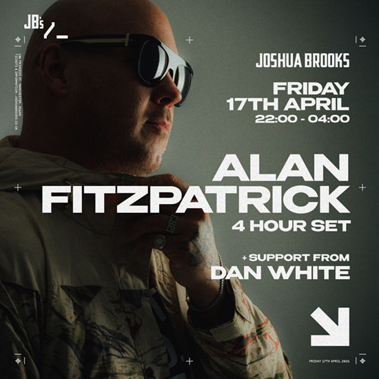 Drumcode heavyweight Alan Fitzpatrick lands at Joshua Brooks for a 4 hour set. UK-rooted techno, weighty grooves, late-night pressure.