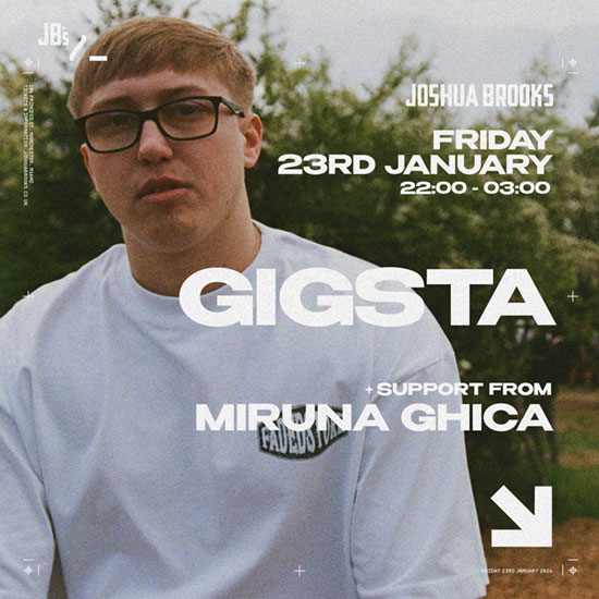Leeds breakthrough Gigsta brings his garage-rooted house sound to the Joshua Brooks basement. Support from Miruna Ghica. Five hours, one room.