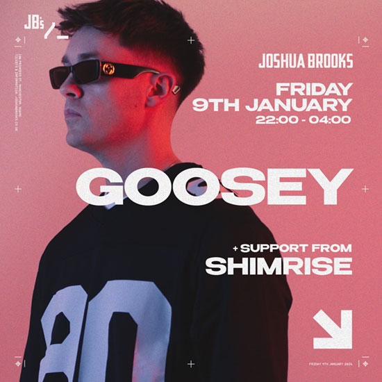 Hot Creations favourite Goosey lands in the Joshua Brooks basement, bringing his Barcelona-rooted house sound to Manchester. Support from Shimrise.