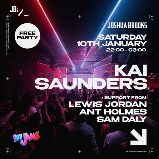 Kai Saunders returns to Joshua Brooks as 101 Jams moves from the clubhouse to the basement. Free party with Lewis Jordan, Ant Holmes & Sam Daly.