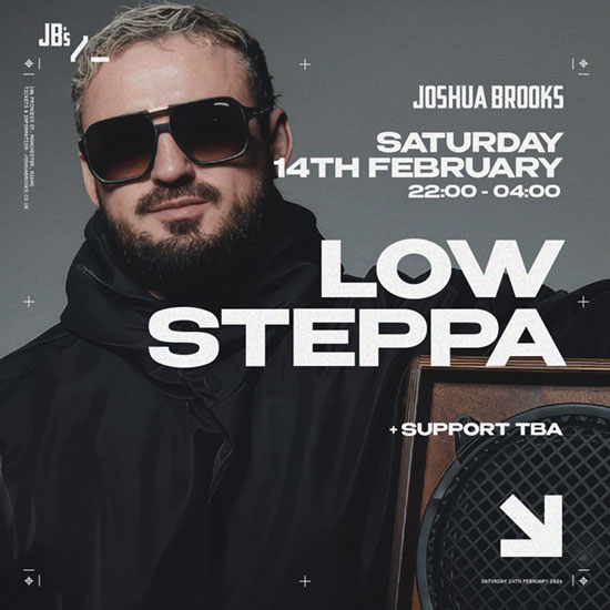 Low Steppa returns to Joshua Brooks this February. BBC Radio 1 Essential Mix selector, Simma Black boss, Manchester basement session. Limited capacity