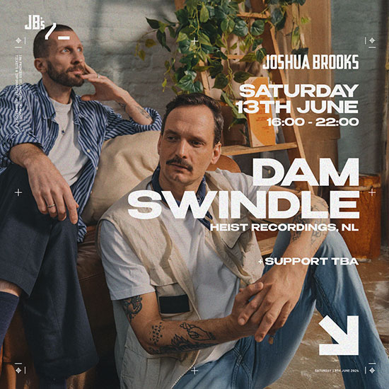 Amsterdam's Dam Swindle bring their Heist Recordings sound to Joshua Brooks for six hours of soulful house, disco and deep grooves beneath the arches.