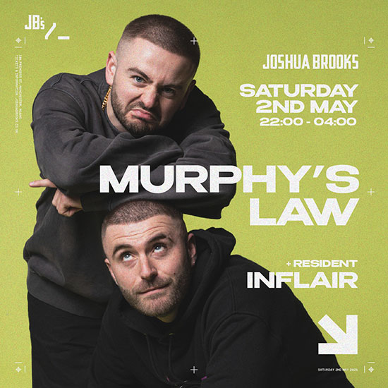 Leicester brothers Murphy's Law return to the basement at Joshua Brooks with resident Inflair. House and tech house all night. 2nd May.