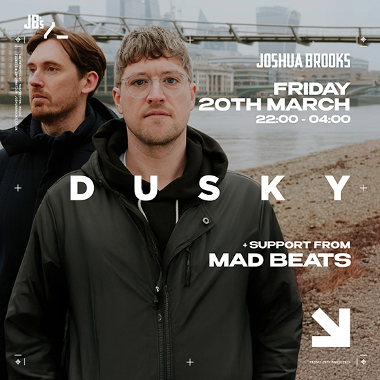 London's DUSKY headline Joshua Brooks for deep electronic excellence. The 17 Steps label bosses bring evolved sound to Manchester's basement.