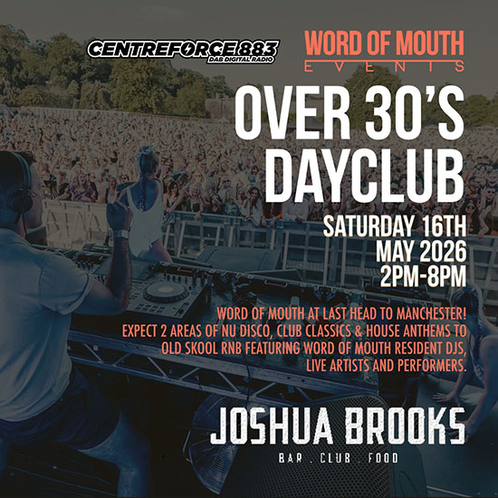Word of Mouth presents Over 30's DAYCLUB! A full production 'Club Night' from 2PM - 8PM - Finally in Manchester!
